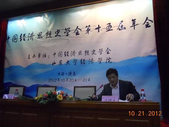 20121020-21日,由中国经济思想史学会主办,山东大学经济学院承办的中国经济思想史学会第十五届年会在山东大学举行。来自中国社会科学院、北京大学、清华大学、北京师范大学、复旦大学、武汉大学、山东大学、上海财经大学等高校、科研院所的100余名专家学者出席了本次年会。我校经济学院邹进文教授、瞿商教授、朱华雄副教授、宋丽智副教授向大会提交论文并应邀参加了本次年会。与会代表围绕“中国经济思想的变迁与齐鲁文化的本土化、国际化研究”这一主题进行深入研讨,取得了丰硕的成果。中国经济思想史学会会长、武汉大学商学院严清华教授做了工作报告,并对乐鱼官方端网站登录入口经济思想史专业在2012年度获得一项中国社科基金项目(邹进文教授)、两项教育部人文社科基金项目(朱华雄教授、宋丽智副教授)进行了高度的赞扬和祝贺。