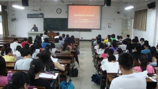 ——经济学院本科生党员培训第一次专题讲座顺利举行 6月6日下午,经济学院本科生党员培训第一次专题讲座在文澜110举行。根据学校党委的相关要求和安排,各院要积极组织学生党员进行一定时间的系统培训,同时也希望同学能围绕讲座内容在课下进行深入学习。本次讲座特别邀请了经济学院党委武身汉书记作为主讲人为大家授课。我院三个年级的党员同学们按时到场,热情满满。 随着热烈的掌声,武身汉书记站上讲台。武书记首先从自己四个月来在经济学院工作的自身经历开始讲起,认为我们学生一代的年轻党员对党和社会现实有想法、有判断,都是正常的。但不管我们的想法如何变化,我们都应该时刻思考一个问题,那就是我们为什么入党。武书记亲切的态度与和蔼的语气一下子就拉近了和同学们的共鸣。