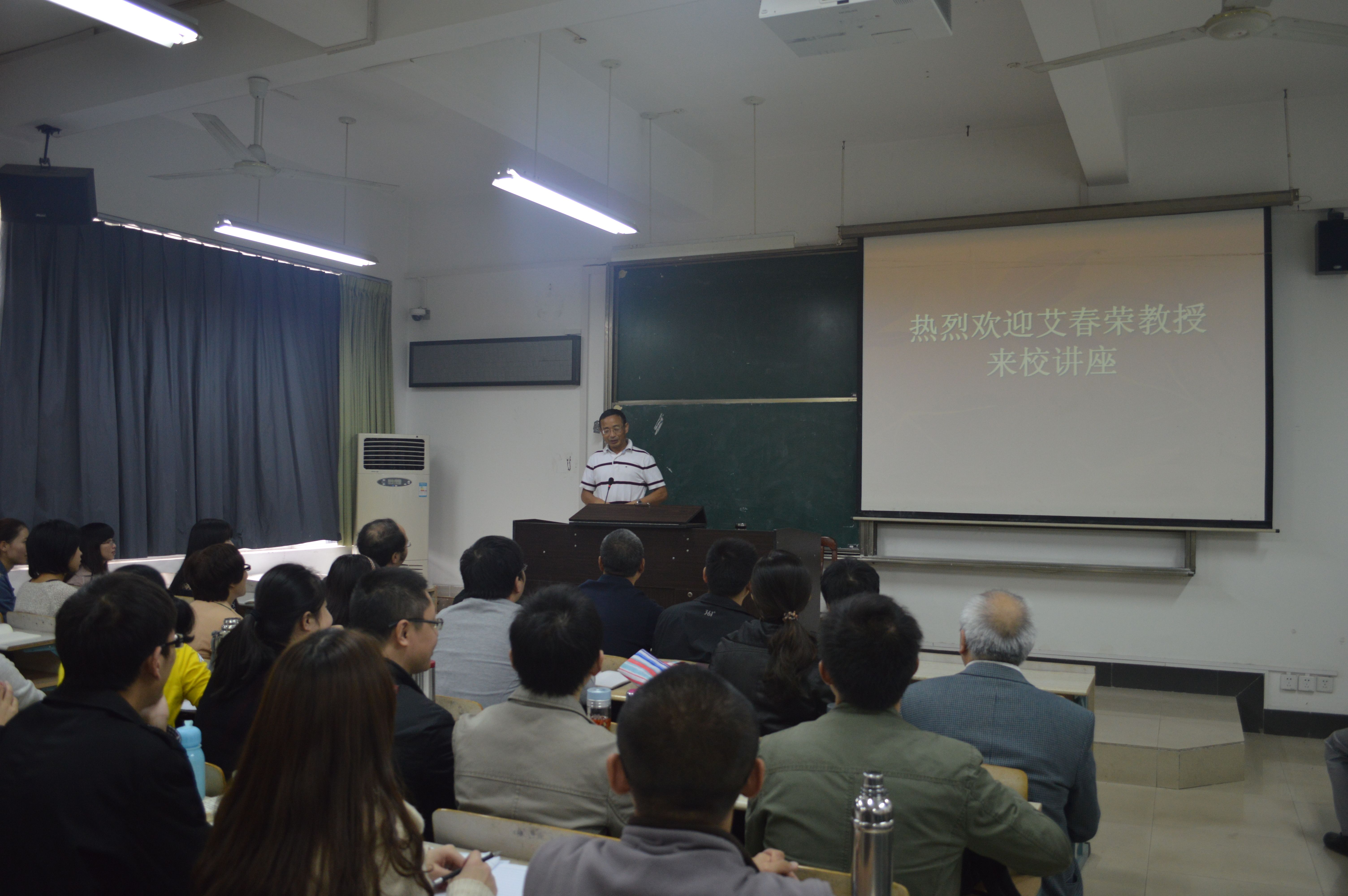 (新闻与网络技术部余付军刘程钺) 20131018日下午三点,美国弗罗里达大学惠灵顿工商管理学院经济系终身教授艾春荣教授在我校文添楼105教室举行了一场别开生面的学术讲座。这次讲座主要与在校学生讨论计量经济学模型的建立方法。经济学院的众多博士生、硕士生积极参加,获益匪浅。