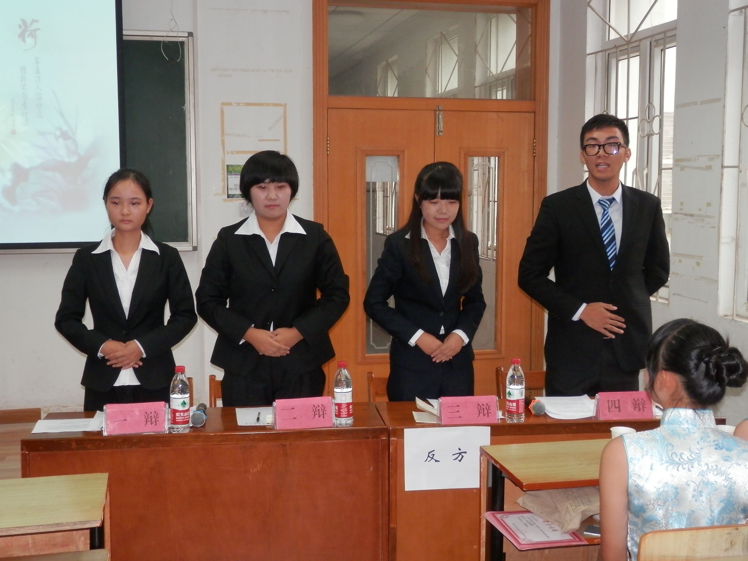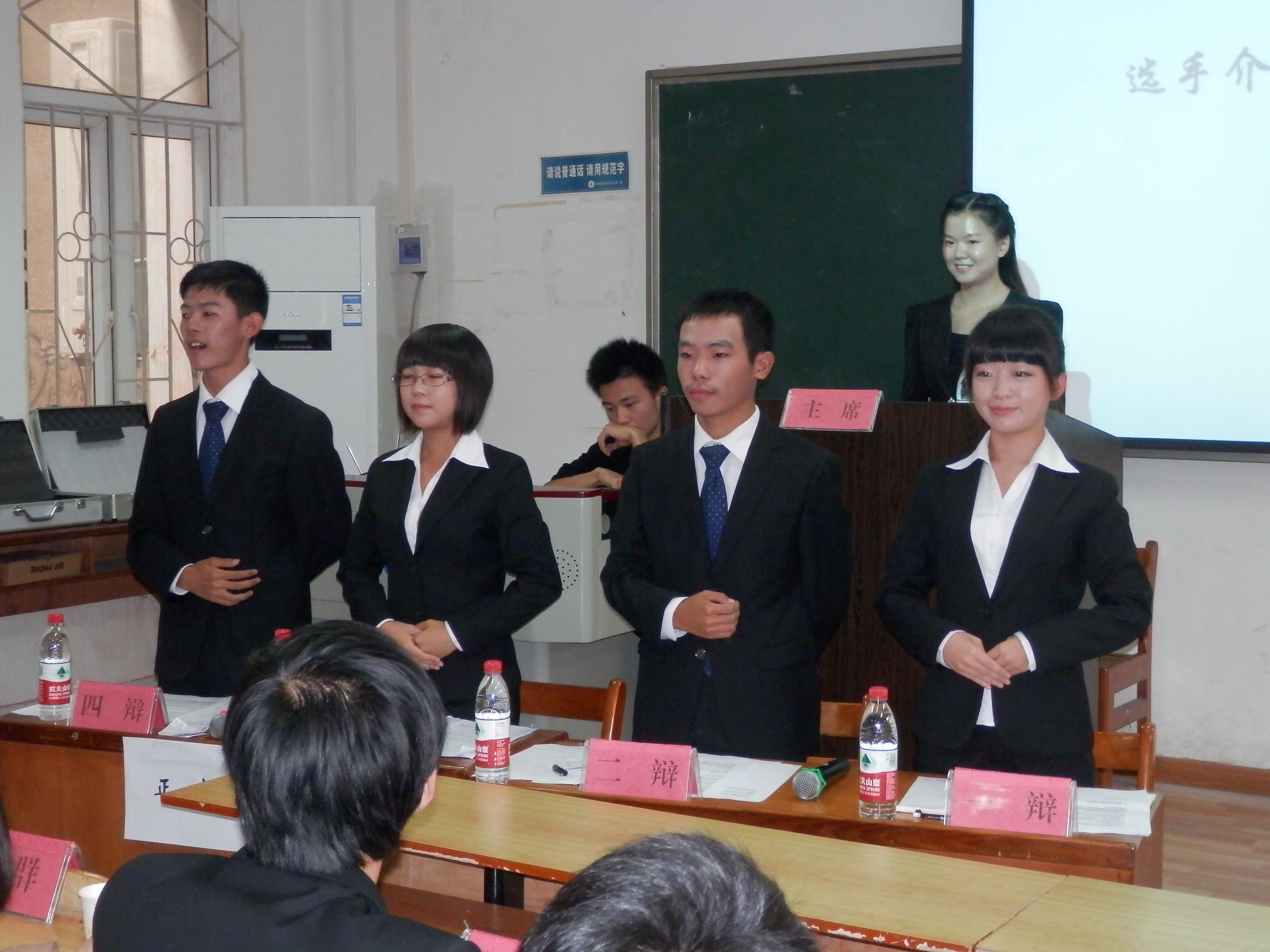 ——经济学院第七届经英杯新生辩论赛决赛 (新闻与网络技术部 郑萍萍吴宇晗)10月20日下午3点30分,由经济学院辩论队主办的第七届经英杯新生辩论赛决赛在文润楼隆重举行,本次比赛的辩题为“小城贵族是否胜于大城蚁族”。特邀嘉宾有党委书记詹万明老师,经济学院副院长罗良文教授,而评委团则由五名来自校演讲与辩论协会及经济学院辩论队的师兄师姐组成。