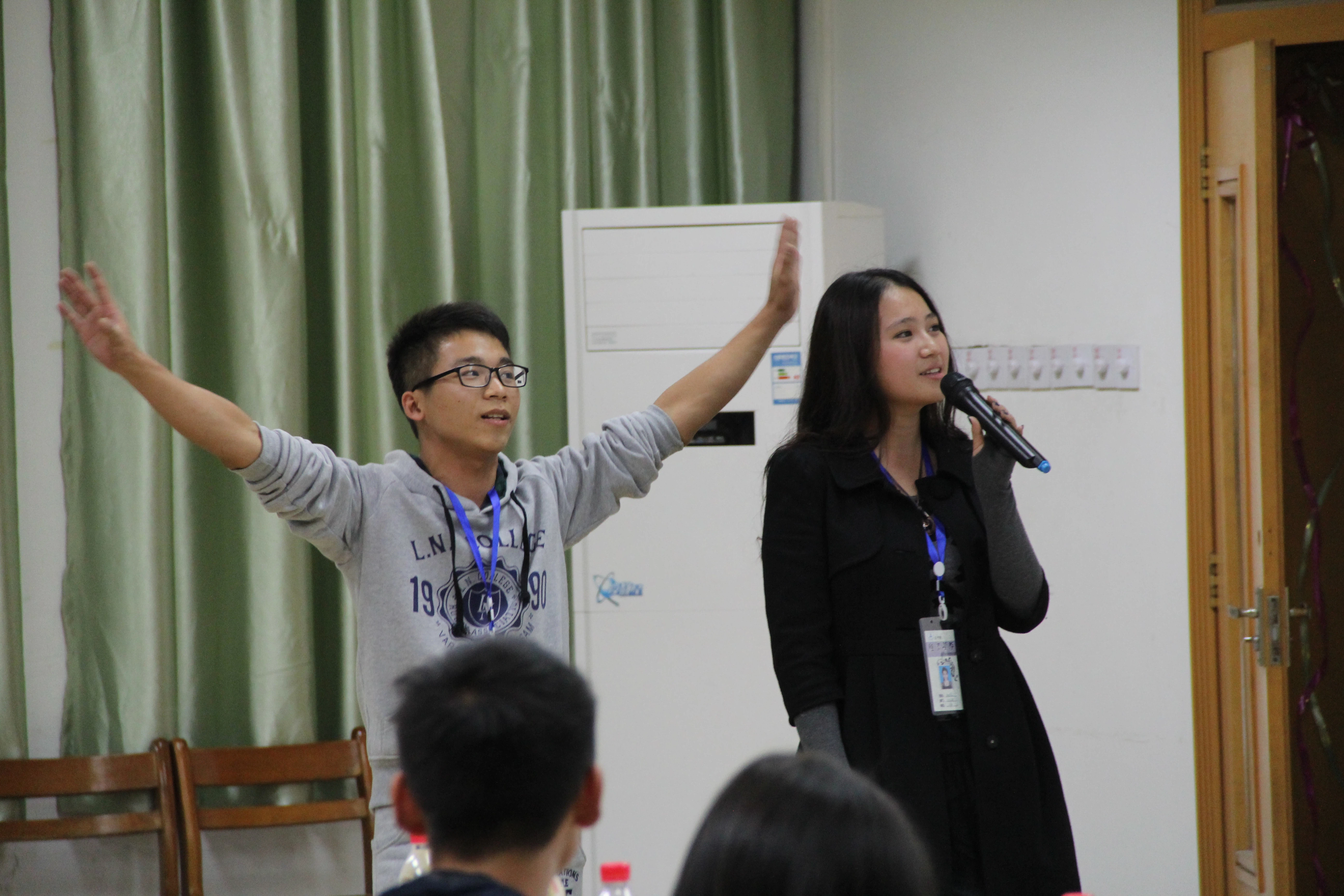 在互动环节中,到场同学纷纷讲述自己的寝室趣事。两位师兄分别介绍了自己寝室生活趣事和寝室获奖的经历,提醒师弟师妹珍惜自己与室友相处的时光。他们的发言点燃了大家的热情,同学们畅所欲言,分享了自己的寝室趣事,其中来自经济1304班的郑同学更带领着室友现场演唱起了电视剧《西游记》开场曲,赢得大家热烈的掌声。游戏环节——“同舟共济”将现场变成欢乐的海洋,把开幕式推向高潮。最后,开幕式在大家合唱温馨感人的《相亲相爱一家人》中圆满落幕。