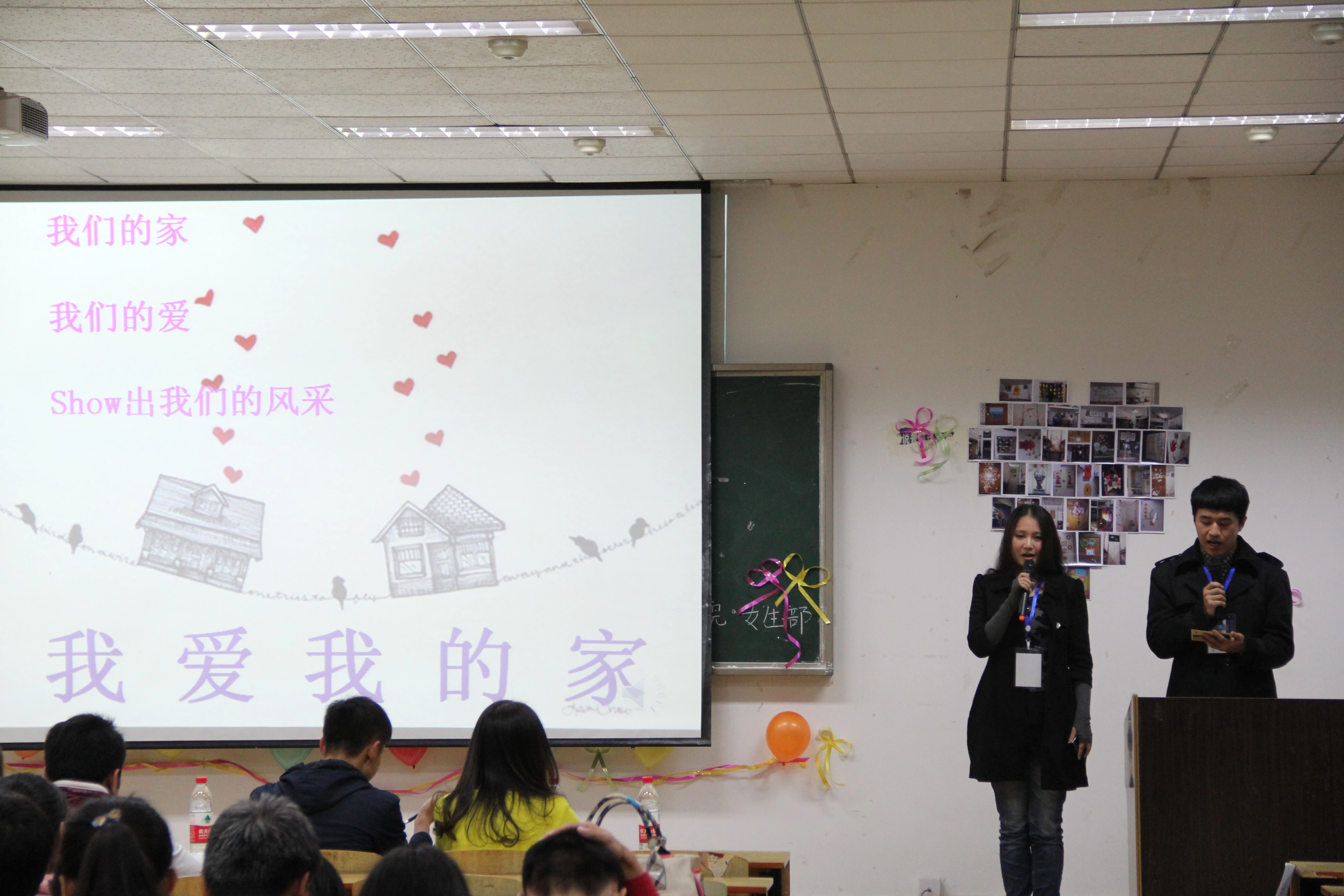 主持人宣布开始后,由蒋芳老师致开幕词。她表示,大学生活将会成为我们一生最为美好的回忆,而寝室就是我们回忆停驻的地方。相聚就是缘,室友就是我们的家人。所以开展“寝室文化节”,展现寝室风采,团结寝室同学很有意义。接着她称赞主办方对本次活动的精心筹划,认为这种活动有利于加强男女生之间的友谊、丰富同学们的课余生活。最后,她预祝本届“寝室文化节”获得圆满成功。
