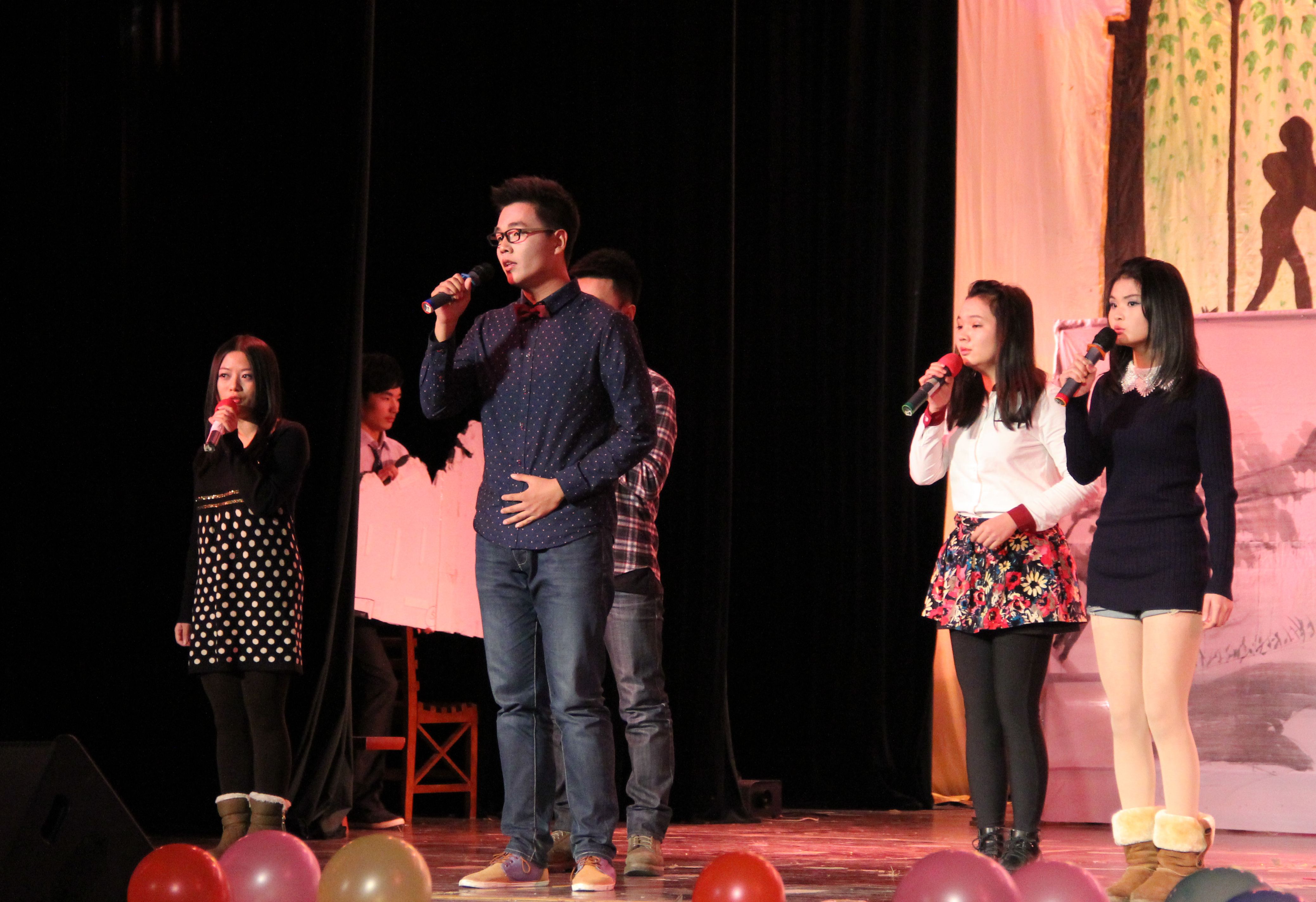 第一个上场的班级是经济1303班,他们带来的是舞台剧《春天在哪里》。此节目颇接地气,他们将同学们的日常生活经历进行艺术加工后,通过幽默夸张的肢体语言和令人捧腹的台词呈现出来,演员们演技精湛,诸多亮点引发观众阵阵爆笑。第二个节目是经济1301班带来的舞台剧《Light up the world》,与第一个节目的幽默风格不同,此节目主要传达了青春无畏,追梦无疆的信念。接下来是国商1202班带来的《画梦》。随着古典音乐的响起,舞台上曼妙的身姿灵动起来,白色屏风在一位舞蹈演员的信手“涂抹”之下,渐渐显现出一幅九孔桥的水墨画和“博文明理,厚德济世”几个大字,令观众拍手叫绝;场景移换,又来到了白衣飘飘的校园,音乐变成了现场的和声演唱,舞蹈演员依次上场用拼图的方式在另一块屏风上拼出了学校的标志性建筑文波楼。古典与现代的交汇,历史与青春的融合,不论古今,凡是青春的都是美的。与《画梦》主旨相似,经济1304班带来的话剧《书生意气》同样给人以深省的力量。剧中的主人公是一名不甘于平庸又在现实中找不到方向的大学生,在超现实主义的情节设计中,他先后穿越到北宋末年和1919年,成为了冒死为民请命的太学生陈东和与军阀作勇敢斗争的青年学生,最后回到现实中的他终于领悟到了当代大学生身上应该肩负的责任与使命。热血尚未平息,精彩的节目又轮番来袭。