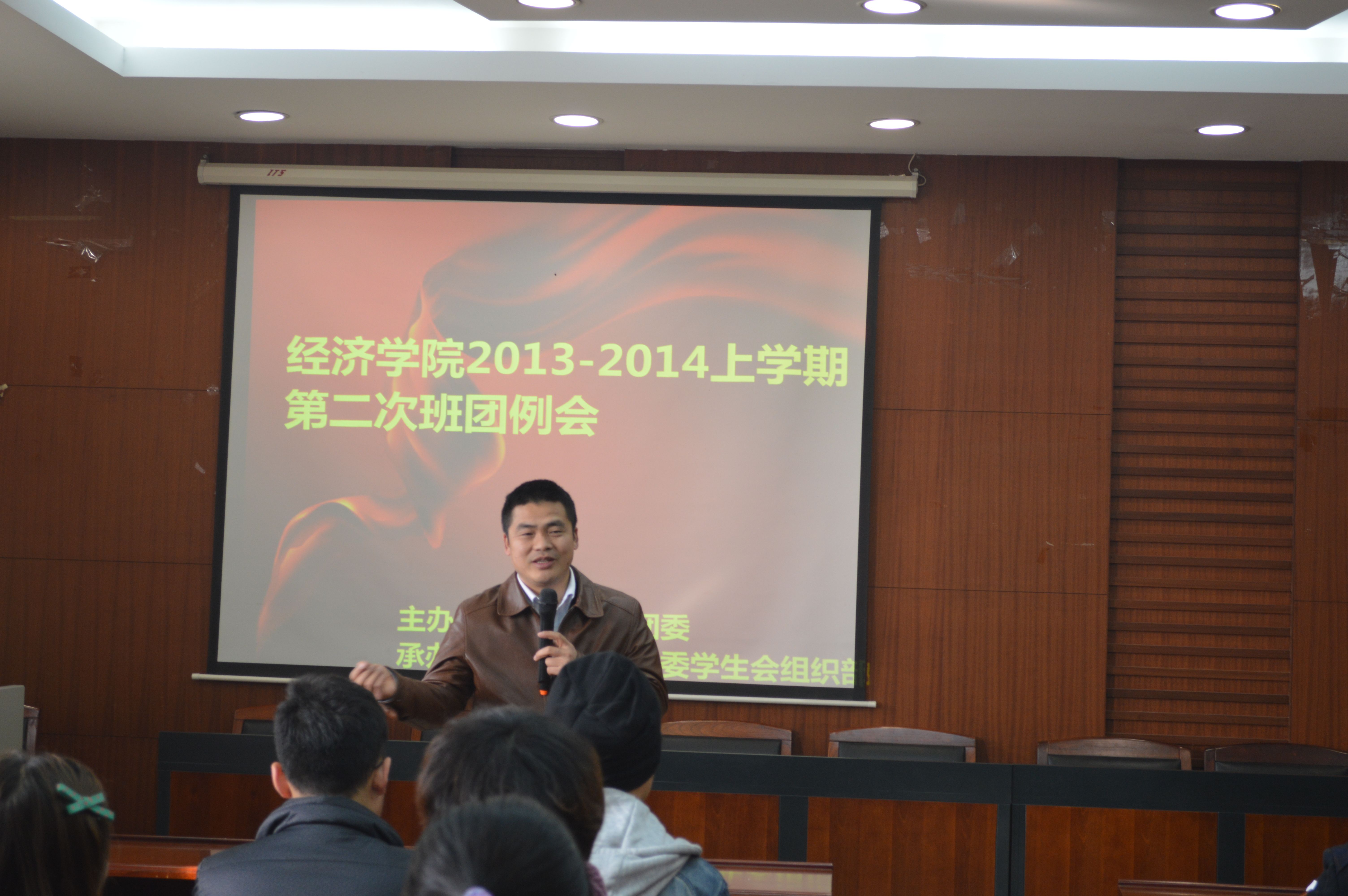 在随后班团例会上,经济学院党委副书记詹万明老师也走进会议现场,与同学们亲切交谈。他提出每次活动结束后都应及时总结,加强各部门的沟通交流,吸取经验教训;同时也对学生会提高工作效率,多举办关于求职、考验、出国留学等方面的经验交流会等方面提出了自己的希望,并传达了学院关于助力同学们就业的一些新对策。