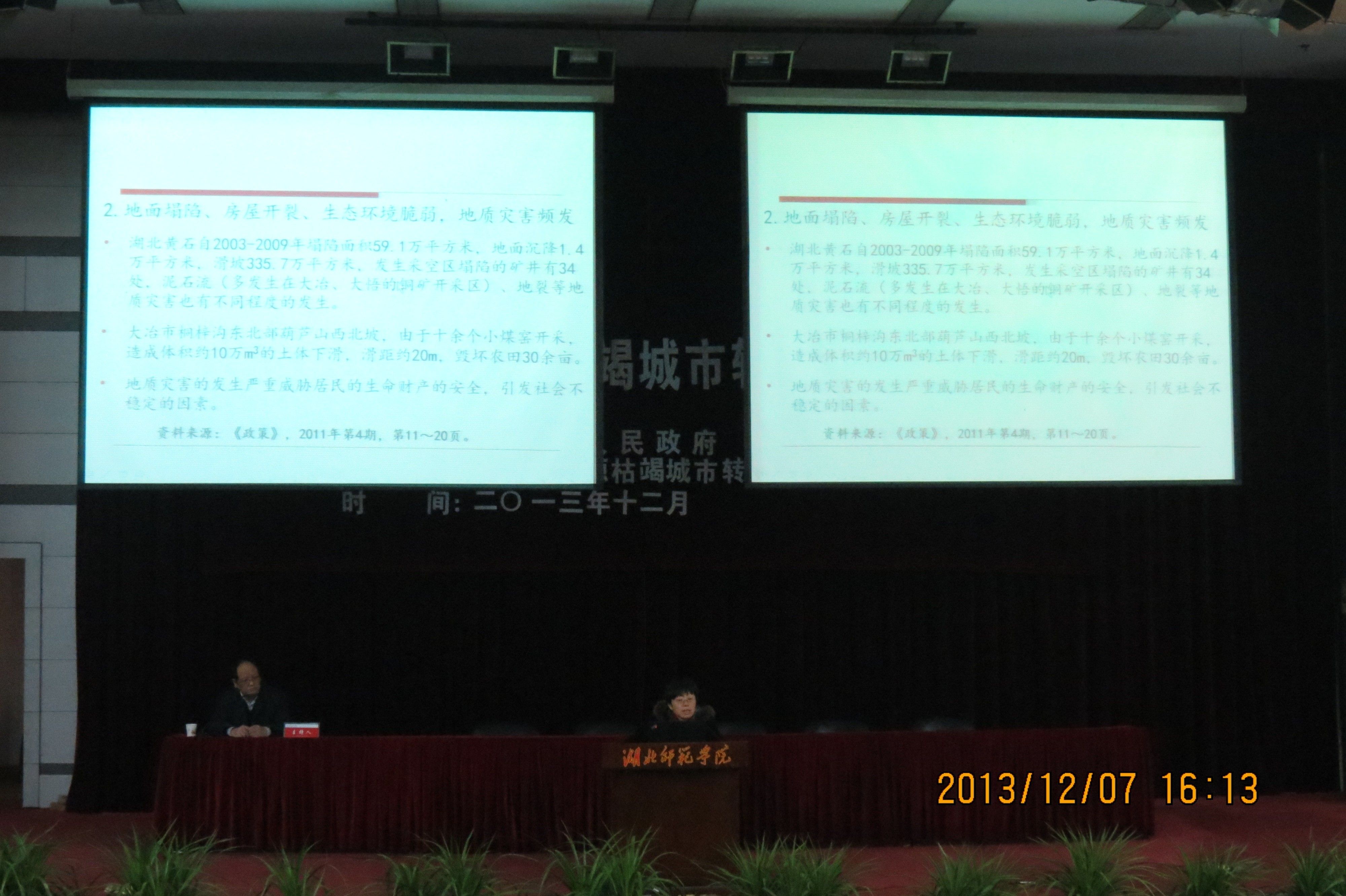 12月7日~8日,由黄石市人民政府、湖北师范学院主办,湖北省资源枯竭城市转型与发展研究中心承办的“2013全国资源枯竭城市转型与发展论坛”在湖北师范学院举行。本次论坛邀请了中国科学院、中国地质大学(北京)、中南财经政法大学、中国矿业大学、华中师范大学、武汉理工大学等全国20多所重点高校的专家学者,以及内蒙古乌海市发改委、安徽省淮北市发改委、黄石市发改委等10多个部门的负责人就资源枯竭城市的转型与发展开展研讨交流。我校经济学院师生向论坛提交了5篇论文。 本次论坛积极探索了资源枯竭城市转型的有效途径与实施机制,对资源枯竭型城市“如何转型”以及“往哪儿转型”提出了宝贵的意见和建议。