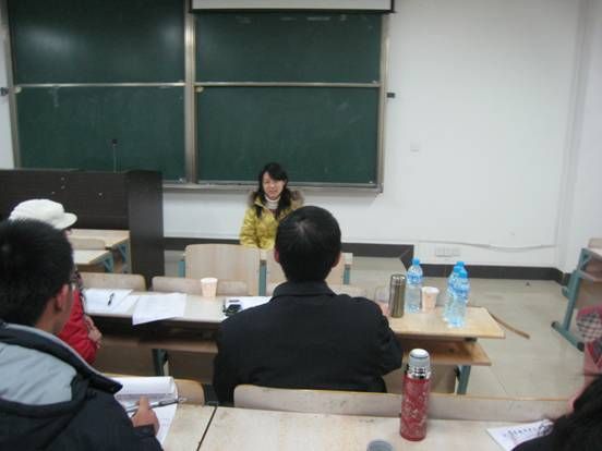 晚上七点整,活动正式开始,首先由主持人向参赛选手介绍本次活动的面试考官,他们分别是中南财经政法大学就业与创业指导中心教研室主任邓汉慧教授、公共管理学院人力资源专业熊卫教授、经济学院梅金平教授、杨晓军老师,而后又详细的介绍了比赛规则和面试流程。由于参赛选手较多,我们将比赛分为两组进行,每一小组都由两名评委老师和两名记录人员组成。每位选手都有五分钟的时间,在这五分钟时间里选手们首先进行自我介绍,然后说明自己的竞选职位及竞选理由并回答评委老师的提问,最后由评委老师对每位选手的综合表现及存在的问题进行点评,并提出相应的建议。
