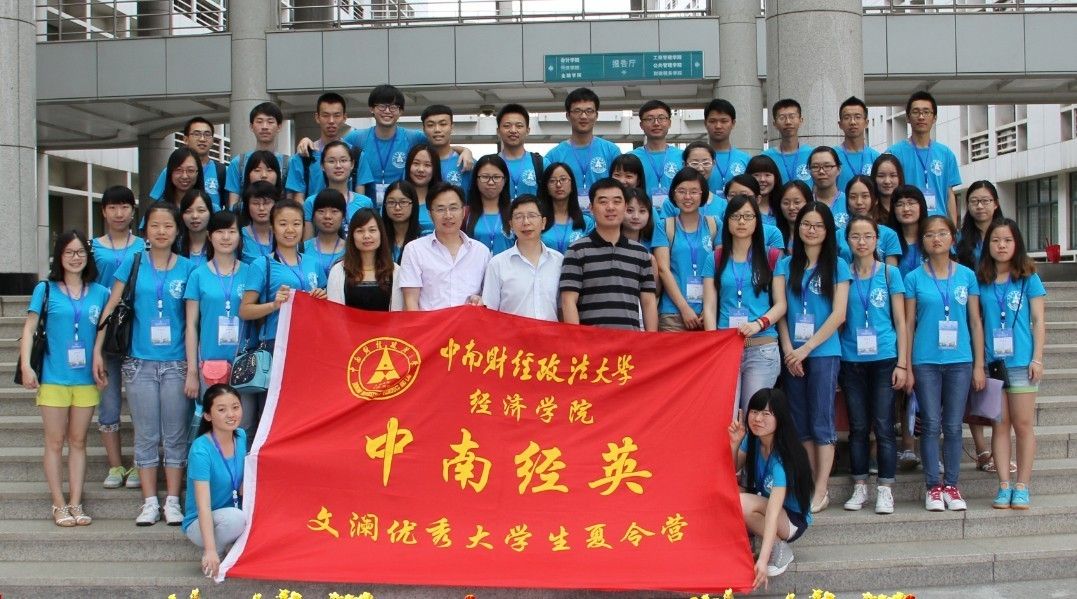 中南财经政法大学2014年“文澜优秀大学生夏令营-中南经英”活动是经济学院组织的第二届全国优秀大学生夏令营,旨在促进中国高校经济学优秀大学生之间的交流,加强青年学生与经济学者的联系,并从中选拔优秀学生继续深造。本次夏令营中的优秀学员将有机会获得2015年我院硕士研究生免试推荐资格。“中南经英”夏令营是我院接收外校和本校其他院系推荐免试研究生的途径之一。 此次夏令营共有来自全国各地120余名学生报名,经过层层选拔,有46人通过资格审核,参加了2014年“文澜优秀大学生夏令营—中南经英”的系列活动。 7月6日上午,营员们参加了我校第二届“文澜优秀大学生夏令营”开营仪式,随后经济学院“中南经英”分营开营仪式在文泉南楼206会议室举行。经济学院副院长罗良文教授主持了开营仪式,他对来自全国各地的优秀大学生们表示热烈欢迎,院长邹进文教授在开营仪式上向营员们详细介绍了经济学院的学科发展情况。在随后的学术讲座中,邹院长做了题为“中国梦的经济学思考”的学术报告,他指出:当今中国处于中国五千年文明史的第“三”次高峰的起步阶段,大家要对实现中国梦充满信心。 7月6日下午的讲座中,杨虎涛教授跟营员们交流了如何做好经济学学术研究的学术报告,营员们纷纷表示从中受到了很多启发,学会了很多经济学思考与研究范式。