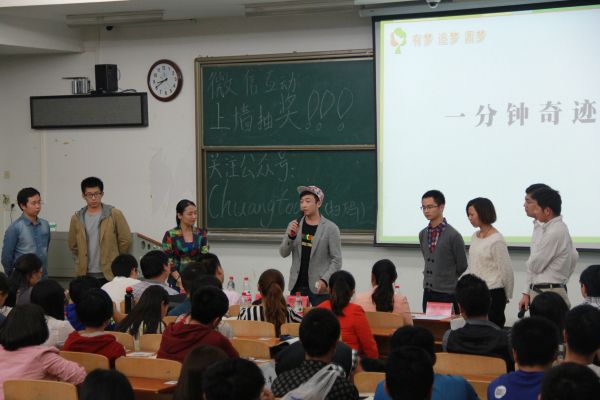 而我校大学生创业者黄仲,以其亲身经历为我们讲述了他是如何“搞定”他的天使投资人的。他强调好的创意、坚定的决心、靠谱的团队、成熟的想法以及成形的产品业务才是最重要的条件。同样是来自我校,经济学院大二的王波在稍后紧张的五分钟路演活动中,也展示了他的项目——“绿盆友”创意盆栽,表现了创业智慧。