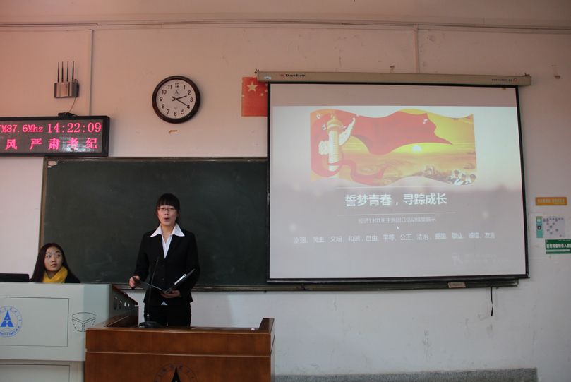 在激动人心的颁奖仪式结束后经济1402班、经济1301班分别为大家进行了优秀团日活动展示。经济1402班团支书展示了经济1402班情动我心、志愿我行两大活动中的精彩花絮,大家在欣赏的同时,也感受到了经济1402班同学为了争取第一的不易。相对于大一新生的激情,经济1301班团支书则展示出高年级同学更成熟、更理性的一面。在经济1301班的ppt展示中,我们看到大二的同学灵活地运用新媒体平台进行了前期宣传;同时,该班同学通过与爱心超市合作筹集活动经费的方式也为其它获奖班级提供了借鉴。最打动人心的部分,则是经济1301班同学将自己对青春的理解、对梦想的憧憬写在孔明灯上,并一起在浙晓广场放飞。最后,大会在掌声中圆满结束。