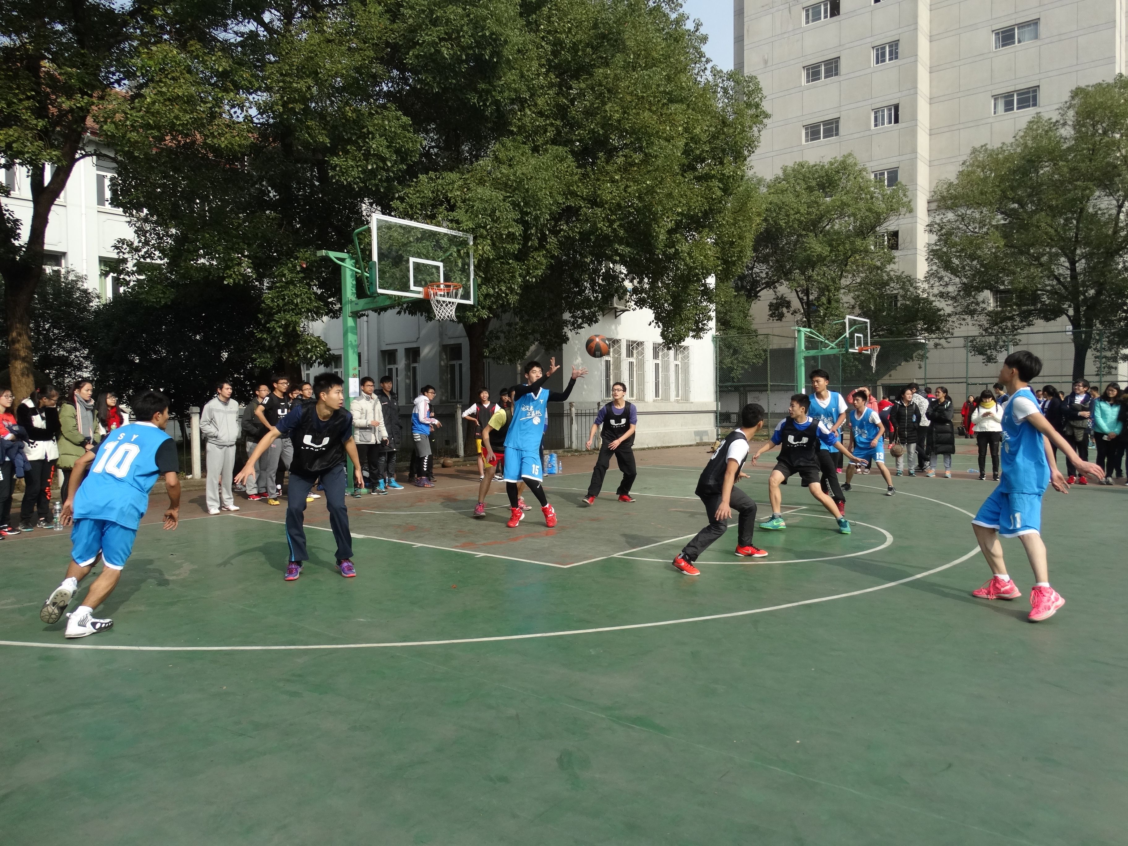 男篮第一场的对手是哲学院。随着裁判一声哨响,比赛正式开始。经院的队员们开场之后手感火热,里突外投连拿六分,并且多次造成对方球员犯规。在打出了又一波6比2的小高潮之后,经院以12比2的比分领先结束第一节。第二节比赛经院继续扩大领先优势,并以21比4的比分大比分领先进入中场休息。易边再战,身高和力量都明显占优的经院球员很好的控制住了篮板球,也就将比赛的主动权牢牢地握在手中。在顶住了对手的凶猛反扑后,经济学院男篮以23比13的比分取得了开门红。在另一场比赛中,经院女篮在开局0比6落后的不利局面下,迅速做出了调整,奋力追赶并一度完成反超。但是过多的失误使得经院陷入被动。虽然力拼对手,但是女篮姑娘们最终未能力挽狂澜,以13比17惜败于法学院。
