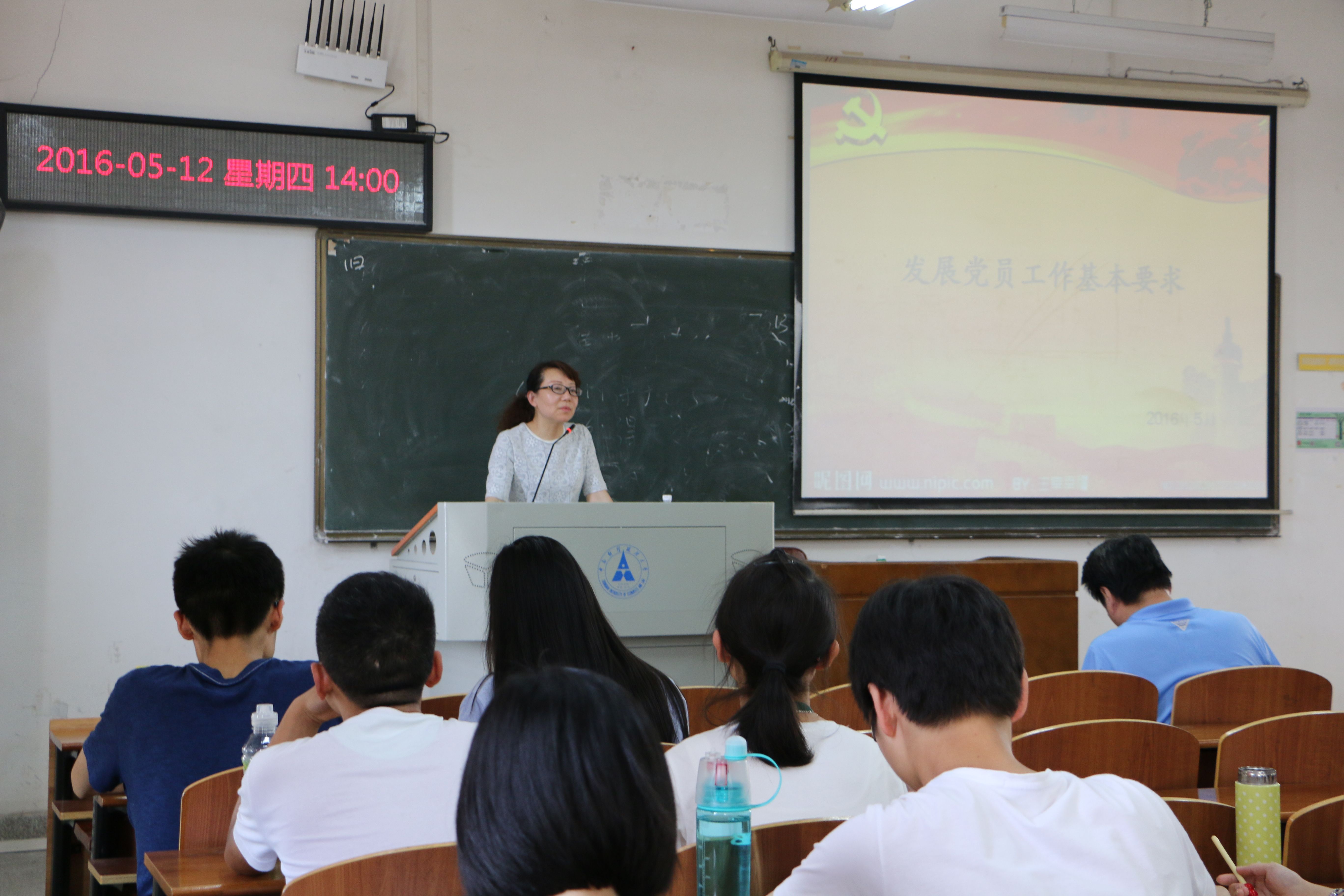 (新闻与网络技术部 单俊俊 王洁)2015年5月12日,经济学院入党培训讲座在文澜楼308教室展开。校团委组织部组织员李明老师受邀作为本次讲座的主讲人,经济学院学生工作办公室主任孟庆红老师、经济学院组织员罗慧敏老师、研究生辅导员向克强老师、2013级辅导员聂飒老师、2015级辅导员岳明泽和康俊老师出席本次讲座。讲座以发展党员工作的基本要求为主题,概括了发展党员工作程序、发展党员工作注意事项及其他问题,旨在消除经济学院入党积极分子对于入党程序及细则的疑惑,积极发展优秀学生党员。 下午两点,讲座正式拉开帷幕。李明老师首先指出入党培训是基层党建工作的重要工作,是培养中国特色社会主义的重要途径,发展学生党员与我们每个人息息相关。在介绍发展党员的工作程序时,李明老师谈到新形势下发展党员工作的总要求是:按照“控制总量、优化结构、提高质量、发挥作用”的总要求,严格发展党员工作,提高发展党员质量。要达到从严治党的要求,必须做到四个“严格”,即严格标准、严格培养、严格程序、严格责任。接下来李明老师向我们介绍了详细的党员发展流程,这一流程包括入党申请人、入党积极分子、发展对象、预备党员和正式党员等四个阶段。老师结合入党积极分子培养、考察登记表的具体内容以及自己入党的切身经历深入浅出地为广大学子分析了各阶段的注意事项,重点突出,同学们受益匪浅。