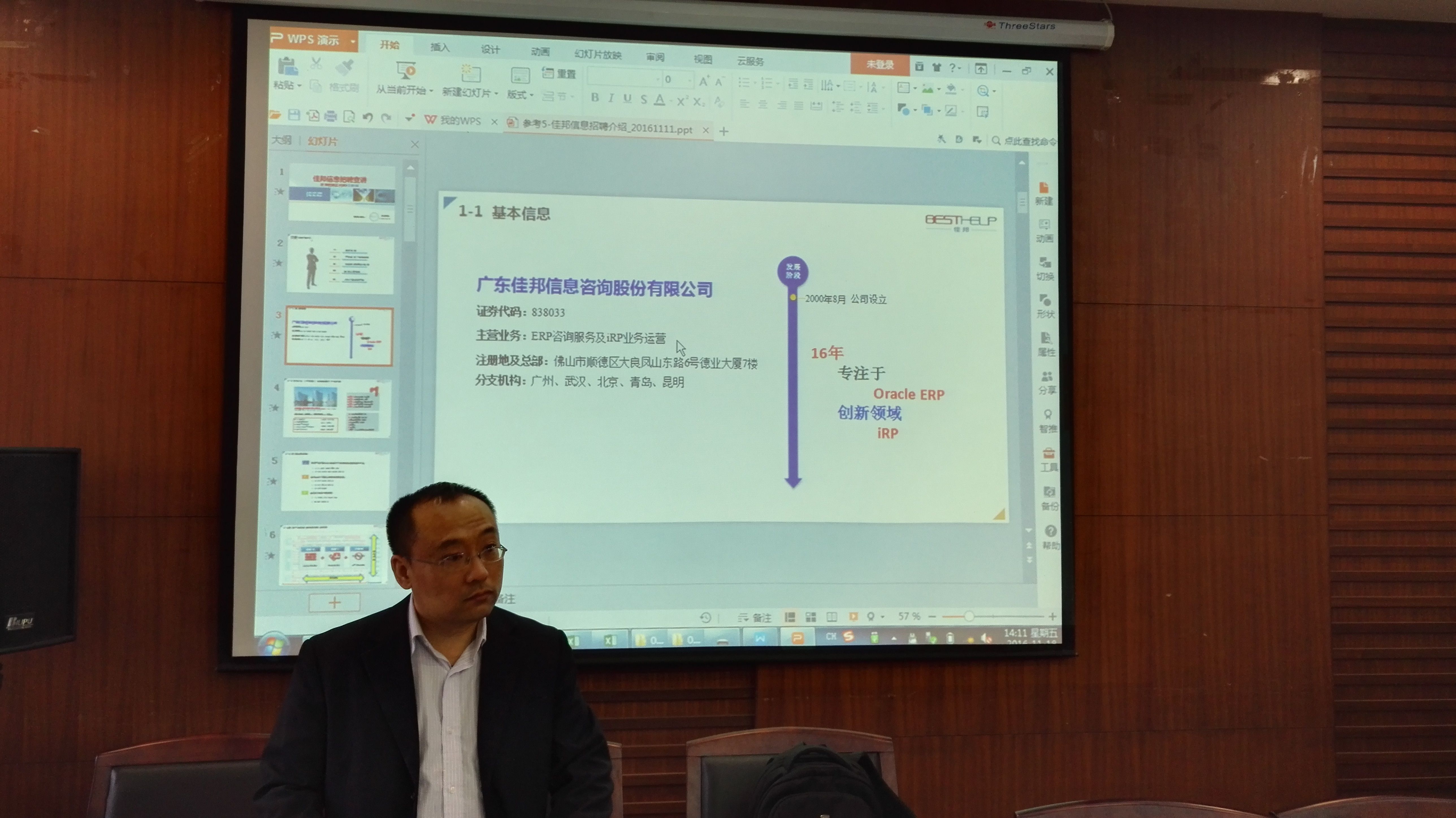 元露丰校友首先介绍了广东佳邦信息咨询股份有限公司及其业务情况。佳邦创建于2000年,作为中国本土领先的IT咨询公司,为客户提供端到端的整体IT解决方案和服务。总部设在顺德并建有北京、广州、青岛、昆明、武汉多家分公司,为全国客户提供优质的IT咨询服务。接着他和毕业生们交流了招聘的具体要求和情况,并和大家分享了自己过去寻找工作和应聘的经验。