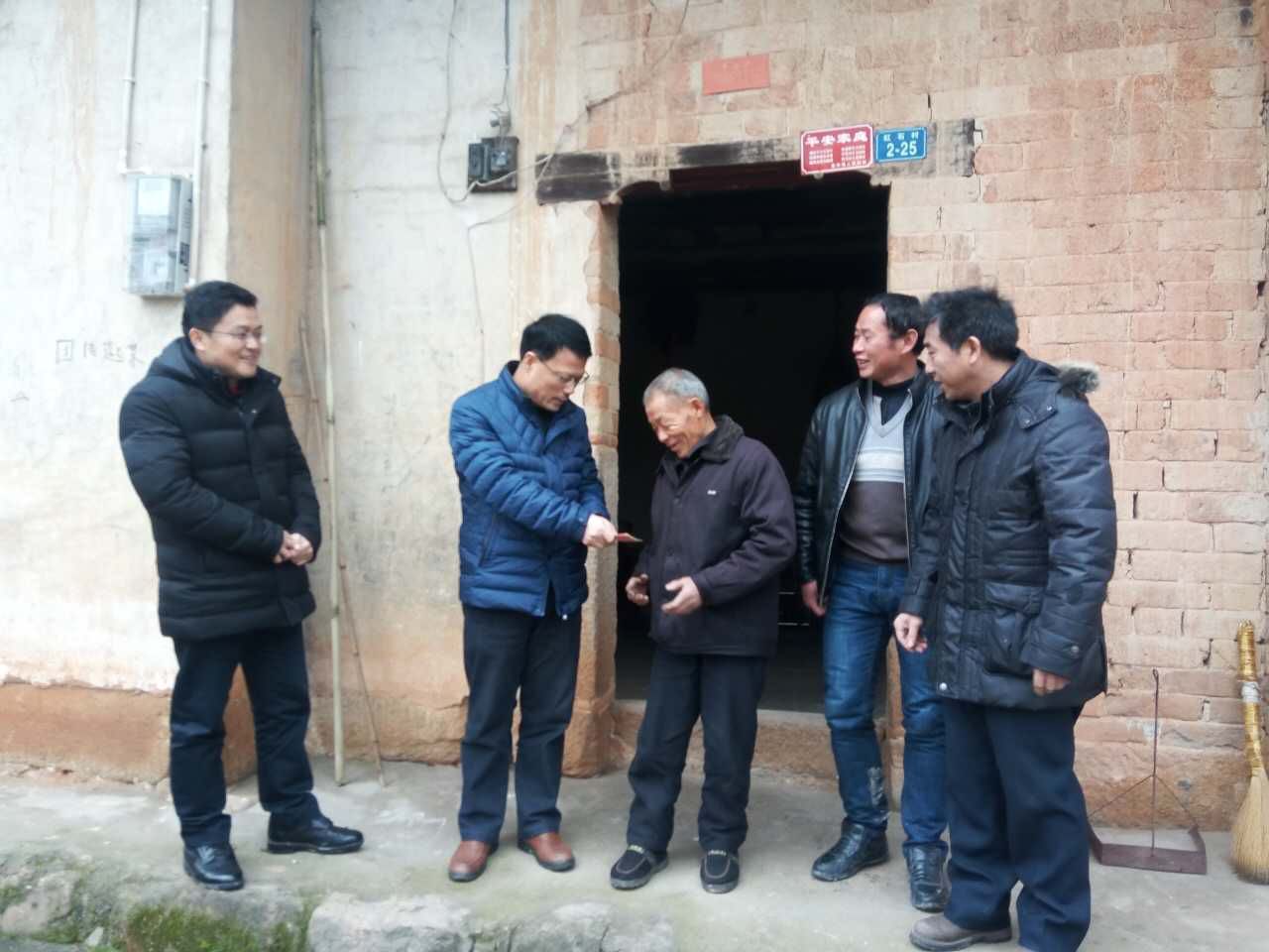 2017年1月18日,经济学院党委书记武身汉、院长卢现祥一行赴咸宁市通城县麦市镇红石村调研我校精准扶贫工作,并代表经济学院走访慰问了我校精准扶贫驻点村红石村的贫困户代表,看望我校省驻村工作队。经济学院副院长罗良文、李小平等陪同调研。