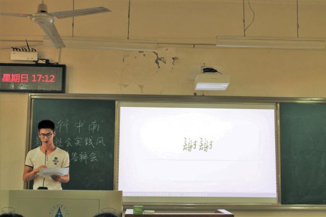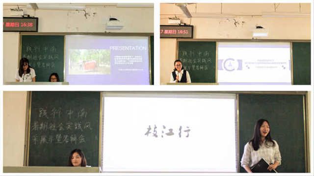 (撰稿:林宋凡拍摄:邱海韵)9月17日,为了验收各暑期社会实践团队的实践成果并对它们进行评分,我院于下午15:00-17:00在南湖校区文澜303教室举办了经济学院举办“践行中南”暑期社会实践展示暨答辩会,本次答辩会由共青团中南财经政法大学委员会主办,经济学院分团委创业实践部承办。外国语学院团委副书记郭洁雯同学、金融学院团委副书记杨紫薇同学、会计学院团委副书记阮士亮同学和财政税务学院团委副书记何一鸣同学出席了此次答辩会并担任评委。我院3个校级立项团队和11个院级立项团队参与了此次答辩。
