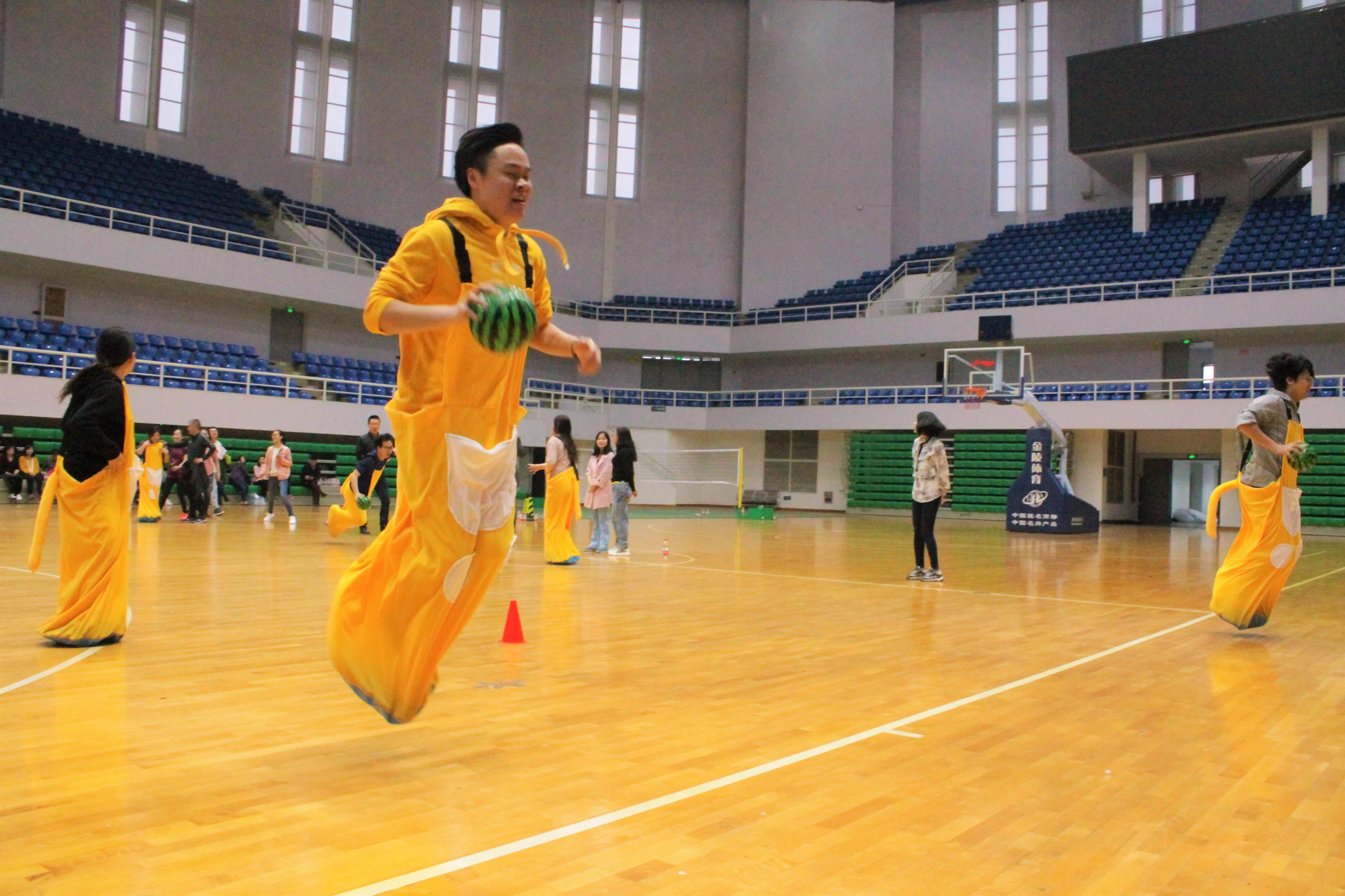 最后进行的是袋鼠运瓜比赛,这是一个考验弹跳力和团队配合能力的项目,对于参赛选手们来说,如何在光滑的地板上快速平稳地到达指定地点十分具有挑战力。面对高难度的比赛项目,经济学院的教职工们毫不退缩,4名队员们配合得当,成功把好几个目标运送到了框内,获得了第四名的好成绩,赢得了阵阵掌声。