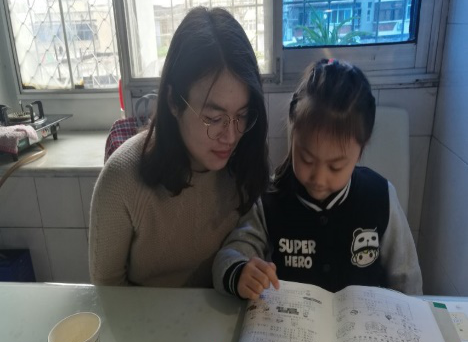 (图1:志愿者给小朋友解答作业中的疑惑)