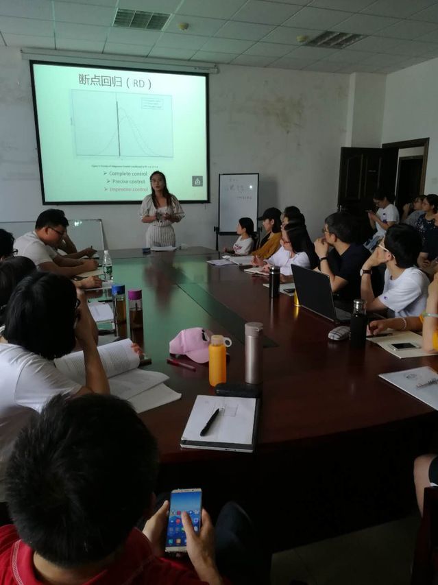 (通讯员 杨柳青青)由乐鱼官方端网站登录入口举办的2018年第4期“经济中南”学术研讨会于5月17日下午15:00在文泉南楼207会议室顺利举办。在此次的研讨会中,经济学院青年教师杨柳青青博士对政策评估的方法及应用做了一个入门性介绍,主题为“双重差分法和断点回归法及其应用”。经济学院苗双有博士为本次研讨会的主持人。其中,经济学院王爱君教授、丁际刚副教授、林相森副教授、黄赛男副教授、吴小芳副教授、马强文博士、潘安博士、孙武博士、何凌云博士、王啸华博士、苗双有博士、周强博士,以及其他院系老师、本院部分博士生和硕士生等参加了本次学术研讨会。
