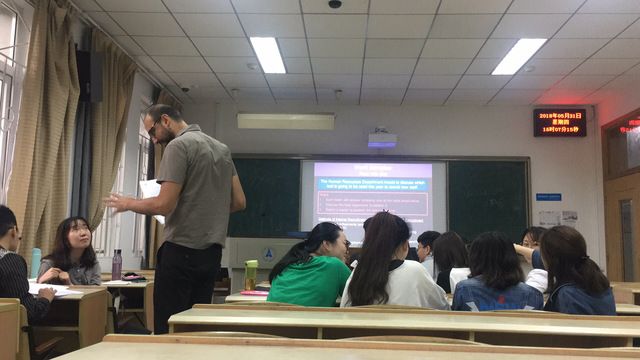 从5月24日和另一个同学去机场接机第一次见到 Clarke 教授到6月1日结束我们最后一次课,虽然只有短暂的几天,但是还是有许多感想的。第一次见到 Clarke 教授的感受就是一个字“高”,两个字“很高”,三个字“超级高”,四个 字“长腿欧巴”,目测教授得有 190+。和 Clarke 教授交谈并没有距离感,让人感 到非常亲切随和,并没有想象中的那么“高冷”。通过畅(尬)聊,我问了你 Clarke 教授对 2018 年俄罗斯世界杯有什么看法,看来教授还是很看好自己祖国的球队—西班牙队的,套用教授的一句话“We will see”,希望西班牙斗牛士们今年能走 的远一点,千万别重蹈上一届世界杯早早出局的覆辙。