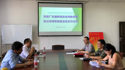 李小平副院长首先介绍了我院情况和本科生实习要求和安排计划,感谢广东佳邦信息咨询股份有限公司提供的实习机会和合作平台。元露风高级顾问介绍了佳邦信息-中南财经政法大学校企合作在校学生2018年暑期实习计划,就公司情况、实习目的、实习定位、实习计划、实习阶段和内容、注意事项,补贴及薪酬福利,乃至通勤方面都作了说明。此次实习安排在广东佳邦信息咨询股份有限公司武汉分公司,地处汤逊湖光谷总部空间,交通近便。神勇总监就协助高校做好在校大学生培养工作,加强校企合作,拓宽合作渠道与我院老师进行了商谈,就校企合作平台建设、软件技术、项目支持、实训安排、联合培养等方面达成共识。