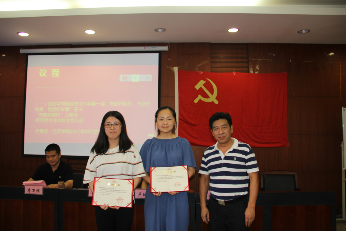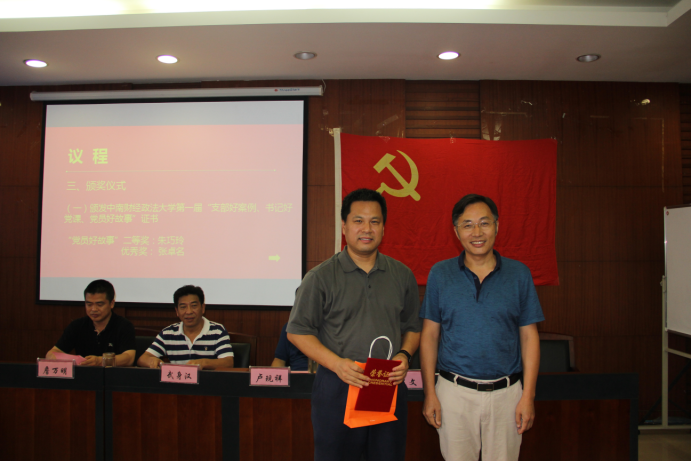 (经济学院副院长罗良文同志为中南财经政法大学“党员好故事”获奖者颁奖)