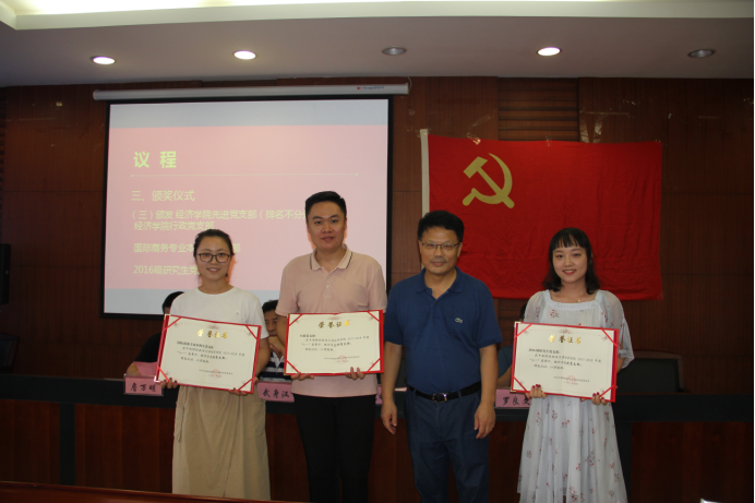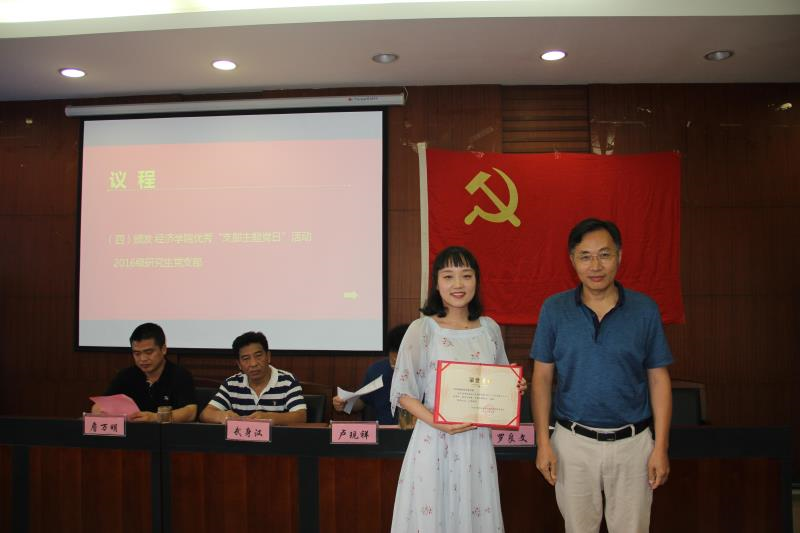 (经济学院副院长罗良文同志为院优秀“支部主题党日”颁奖)
