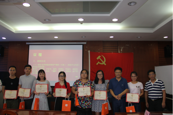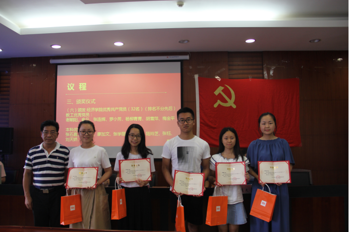 (经济学院院长卢现祥同志为院先进党支部颁奖)