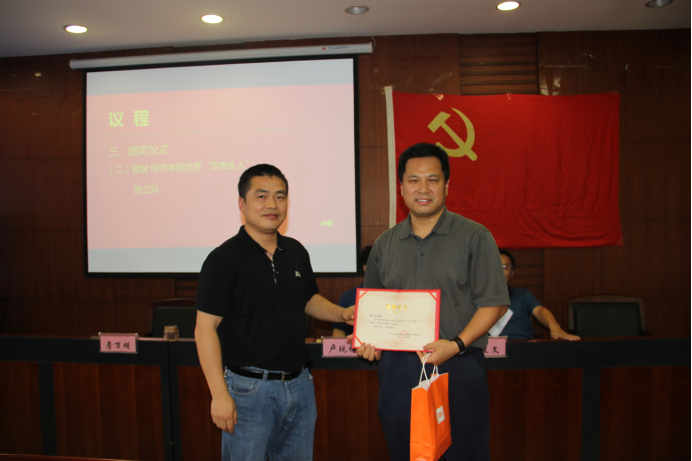 (经济学院党委副书记詹万明同志为院优秀“双带头人”颁奖)