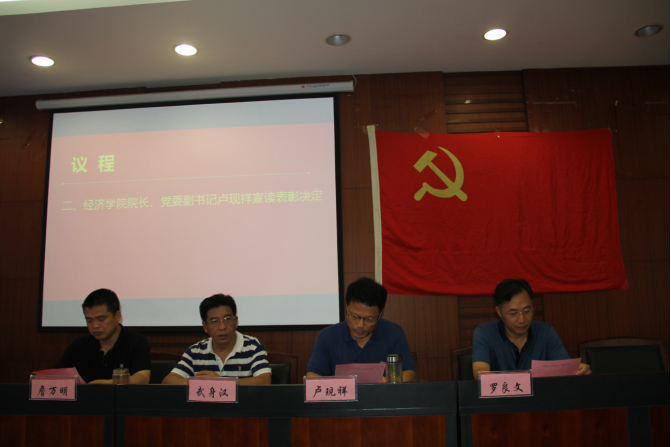 (通讯员 宋昀宜)2018年7月12日下午,经济学院于文泉南206会议室召开2017-2018年度“七一”表彰大会。经济学院全体党委委员及师生党员出席会议。会议由院党委副书记詹万明同志主持。