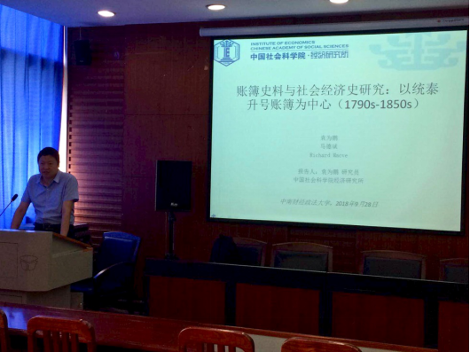(通讯员:牛浩)9月28日上午,中国社会科学院经济研究所袁为鹏研究员为我院师生作了一场题为“账簿史料与社会经济史研究:以统泰升号账簿为中心(1790s-1850s)”的精彩讲座。讲座开始前,经济学院副院长罗良文教授对袁为鹏研究员的到来表示热烈欢迎,并对袁为鹏研究员在经济史领域内的丰富学术成果作了介绍。