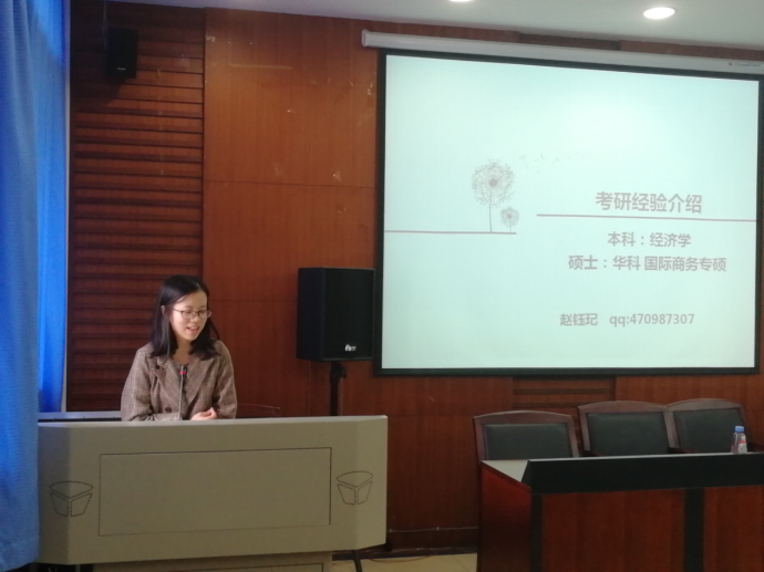 (通讯员:戴岭 摄影:任明喆)为使同学们更好地做好考研准备,增强考研信心,2018年10月18日下午4点,经济学院2019届毕业生考研交流会在文泉南206会议室举行。本次大会由经济学院2015级辅导员谢朝阳主持,2018届考取中南财经政法大学国际商务研究生的李方林师兄和考取华中科技大学研究生的赵钰玘师姐为同学们进行经验分享。
