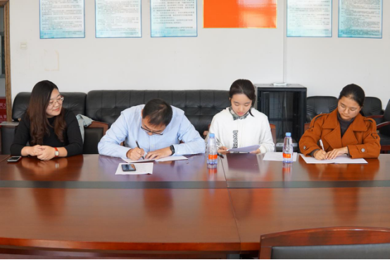 签约仪式开始之前,丁锡江先生与张婷女士两位校友一道在学院文化墙上找到了自己的相片,一时感慨颇多。随后,他们来到文泉楼207室与学院领导以及两位2018级本科生进行了深入的交谈。在签约之前,两位校友对受资助同学提出了一些要求与希望希望她们的成绩可以保持较高水平,并且能够以积极向上的心态对待学习;在学习之余,也尽量多参加一些社会实践。