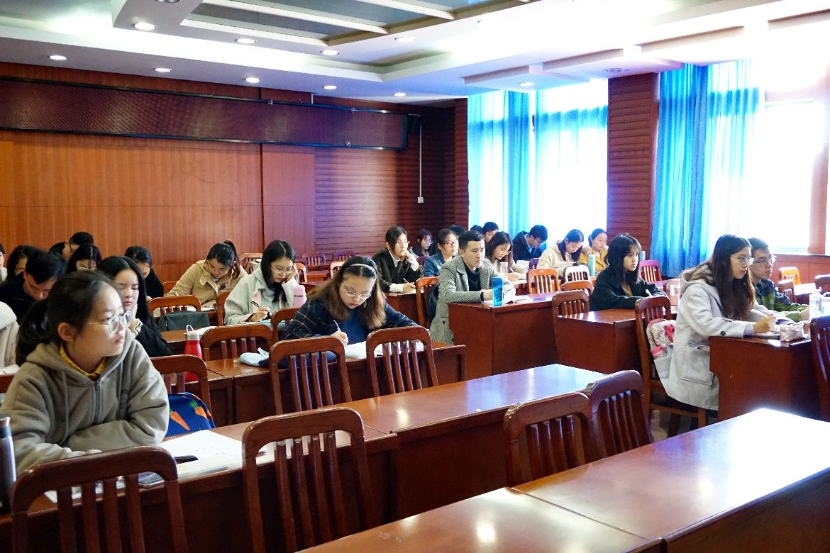 (撰稿:苏颖 摄影:张婉莹)11月9日上午9点30分,经济学院分党校预备党员培训班第三讲于南湖校区文泉楼206室举办,此次培训班课程由经济学院党委书记武身汉老师主讲,经济学院分党校预备党员按时到场接受培训。