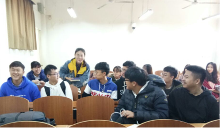 然后,经济1703全体同学于南湖校区文澜105开展室内活动。首先,经济1703团支书尚天羽同学向同学们介绍上海进博会。尚天羽同学从展会理念、展会背景、展会发展三个方面进行生动形象的阐述,并强调了经济全球化和贸易自由化的中心思想,同学们认真聆听学习。接着,围绕尚天羽同学的讲解内容,进行了趣味知识问答,同学们以小组为单位踊跃参加,并赢得了生活委员提前给大家准备的零食小奖励。随后,经济1703班长苏天文同学发言,重点强调了近期事项,以及12月份班级晚会的相关安排,并鼓励同学们多多互动;除此之外,为深化改革开放精神,本班开展“与30年后的自己对话”的活动。同学们积极发言,踊跃互动。