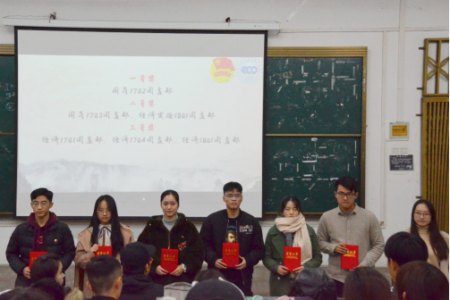 紧接着,由主持人宣读经济学院第六届团日活动设计大赛获奖名单,并由傅佳雯同学为获奖团支部颁奖以示表彰。随后,由获奖的团支部团支书上台进行经验分享与成果展示。国际商务1702团支部团支书傅志倩同学,从团日活动的定义切入,结合她本学期策划三次团日活动的经历,深入阐释了什么是团日活动,为什么要办团日活动,并通过前期策划、中期调动同学积极性等多方面,多方面地讲述了怎样办好团日活动;国际商务1703团支部团支书朱淼晖同学有条理地详细地向大家讲述了一个团日活动从构思到实践再到总结的历程,并多次提及“分工”“创新”“宣传”“灵活应对”的重要性,为大家提供了团日活动设计的新思路;经济实验1801团支部团支书王家琪同学以幽默诙谐的语言,生动地向大家展示了其团日活动的设计思路:形式亲民化,即不固化,增加趣味性,除了亲民的团日设计形式以外,她还向推荐了积分模式,为激发同学们参加活动的积极性提供了新的解决方案。