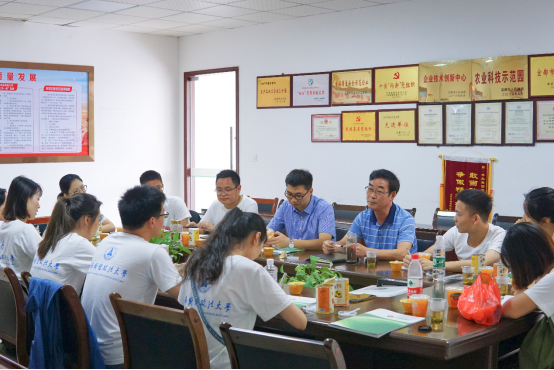 上午十点左右,调研队一行人抵达湖北丰岛食品有限公司,湖北丰岛有限公司总经理王善周和第一书记赵强接待了调研队成员们,并为成员们介绍了丰岛集团发展的情况。