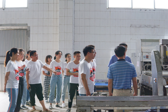 王善周总经理和赵强书记在解答完调研队同学们的问题后就带领调研队参观了包装车间、成品仓库、原材料仓库、产品检验流水线,让调研队对丰岛集团的产品生产线有了更加清晰的认识。