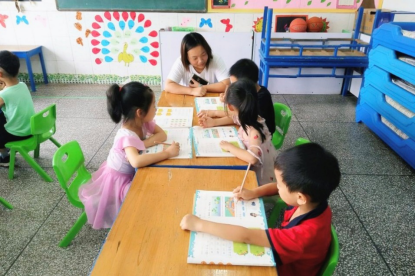 与此同时,在问安镇童星幼儿园,志愿者们也丝毫不懈怠。上午,志愿者们辅导了幼儿园暑期托管班大班学生韵母拼读及书写,讲解了小学托管班四年级学生数学、语文及英语暑假作业,教授了大班学生数学6以内的加减法运算;下午,志愿者们仍旧精力充沛,全身心地投入支教活动,与幼儿园小班学生一起做游戏,教授了大班学生理解被减数与减数之间的关系并布置了家庭作业。