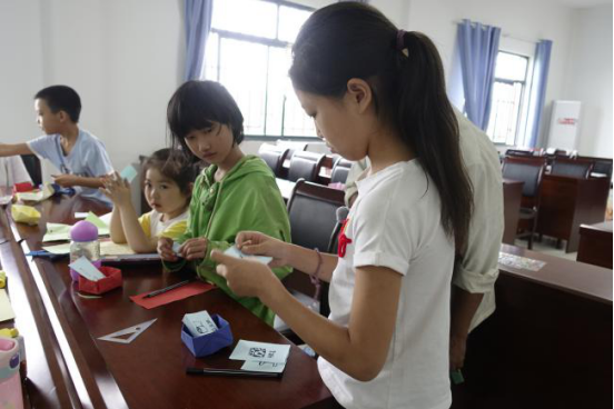 (学生记者韩盼颖 摄影李彦霏)7月12日细雨绵绵,这是安福寺镇社区顺利开展“希望家园”活动的第三天,由于天气状况不如人意,参加活动的孩子们人数有所减少,但仍有10名孩子来到了社区。他们热情洋溢,眼神中饱含着对今日活动的期待。在简单温习昨日功课之后,志愿者们带领孩子们开启了兼具教学意义与游戏乐趣的活动旅程。