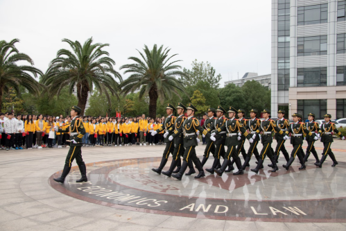 (学生记者张安敏 摄影谭伊梦、张婉莹)为热烈庆祝新中国成立70周年,激发经济学院师生的民族自豪感、历史责任感,让爱国主义精神在师生心中牢牢扎根,经济学院““不忘初心、牢记使命””升旗仪式于10月8日上午7点在南湖校区中原楼顺利举行。参加升旗仪式的领导和老师有:学工部余小朋部长、经济学院卢现祥院长、经济学院党委武身汉书记、经济学院党委詹万明副书记以及全体辅导员。经济学院全体2018级本科生到场观摩。