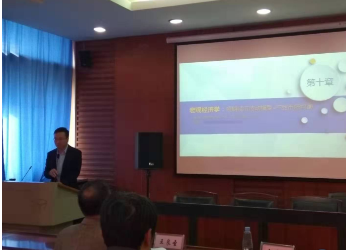 第二位参赛选手是周强老师。周强老师授课内容是“短期经济波动模型——产品市场均衡”,周强老师模拟了课堂上课模式,增加了许多情景对话,赢得大家阵阵笑声。