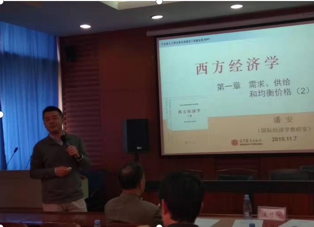 第三位参赛者是潘安老师,他今天讲课内容是“需求、供给和均衡价格”,潘安老师从比较简单的经济学概念入手,对一些经济现象进行解读,授课过程深入浅出,娓娓道来。