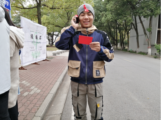 另一部分志愿者在摆点处和参与者互动。摆点处活动有三个板块:什锦心语、大冒险和丢掉写着烦恼的纸飞机。什锦心语是让同学们留下暖心的话,大冒险的问题设计也非常温暖。参与者均会被赠与相应的礼品。看着同学们给许久未联系的朋友打电话,志愿者们心里感动满满。志愿者们真心希望参与者丢掉纸飞机后烦恼消失,写下的什锦心语温暖别人更要温暖自己。