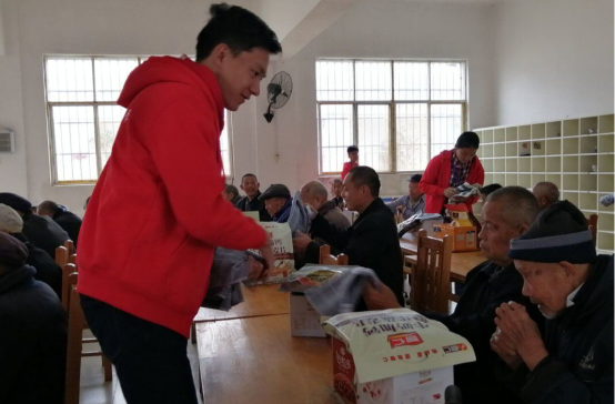 上午9时,季店乡福利院的老人们已经在大厅里坐好并满怀期待地等待着志愿者们的到来。志愿者们到达福利院后,礼貌地向爷爷奶奶介绍了自己的身份并为老人们分发过冬衣物、牛奶、水果等物资,老人们接到物资后连连道谢,志愿者不止一次听到“你们空着手过来就好了”的话语。随后志愿者们献上了为老人们准备的节目,逗老人们开心。节目结束后,志愿者们搀扶着行动不便的老人回到各自的房间。在大厅到房间不长的距离中,有位爷爷双手拄着拐杖走得很缓慢,走一会歇一会却还是气喘吁吁,志愿者心里满是感动,这些行动不便的老人们忽略了自身的不便,只为迎接从远处而来的志愿者们。