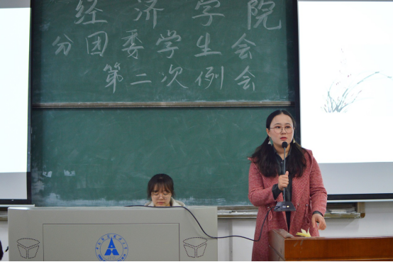 首先,由经济学院分团委副书记易乐怡同学讲话,在讲话中易乐怡同学表达出对学生干部们的殷切期望,希望第一次作为师兄师姐的学生干部们不仅能完成好部门工作,也能将工作经验传授给新学员们,易乐怡同学还表示希望新学员们能在分团委学生会中收获知识、经验和友谊。