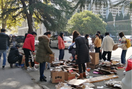 中午时,活动正式开始。志愿者们热情满满,对本次活动的顺利进展充满信心。他们走向各自负责的楼层,逐间宿舍进行废品回收。因为这时候许多同学都在休息,所以志愿者们都轻轻地敲门,轻声询问。同学们对志愿者的工作也表示理解和支持,有的人已经在门外提前备好了废品,有的人主动询问舍友配合完成回收,离开宿舍前,志愿者对同学们的积极配合表达了感谢。同学们也很喜欢经院志协的这次活动,宿舍也因此变得更为整洁。