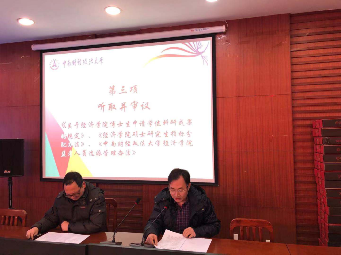 (经济学院副院长罗良文同志向大会作《关于经济学院博士生申请学位科研成果的规定》《经济学院硕士研究生指标分配办法》《乐鱼官方端网站登录入口监考人员选派管理办法》)