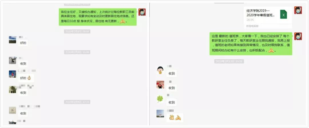 学院发布每日监测汇报的通知并安排专人值班收集每日师生具体信息