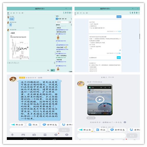 经济学院本学期本科生开设有29门课,共91个课堂,由51位教师担任教学工作,其中全周上课就有69个课堂,线下教学转到线上教学,时间紧,任务重。为确保教学质量,经济学院积极准备,6个教研室主任根据《网络授课信息统计表》,联系每位老师,汇总统计了课程教学大纲、教学计划、教学平台选用、校外平台和资源选用、QQ群或微信群信息等基本情况。全院教师抱着“办法总比困难多”的信念,坚定“一个也不能少”的目标,互帮互助,利用线上BB教学平台、雨课堂、慕课、超星学习通、超星直播客户端等线上课程教学平台及QQ群、微信群、钉钉等社交群,真正实现了“停课不停学”的要求,开启了一场场特殊的“屏聚”,变身为云端“战疫”中最闪耀的“主播”。