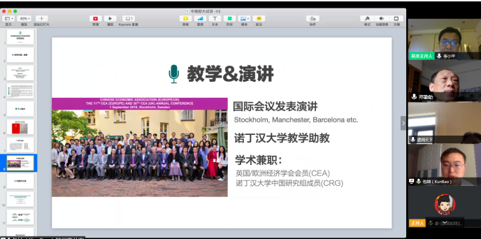 自2019年发布“诚聘经济英才”公告以来,陆续收到海内外优秀博士简历三十余份,经学院招聘工作领导小组筛选,此次共择出6位优秀博士于2020年5月8日上午9点进行网络招聘面试。参加此次面试的博士来自欧美、日本及国内高水平大学,专业涵盖了政治经济学、产业经济学、城市经济与管理、国际金融等学科。本次招聘面试由经济学院院长李小平主持,评委有院党委书记陈勤舫、副院长罗良文、副书记詹万明、经济史研究中心主任瞿商、经济学系副主任张鸿武、国际经济学系副主任徐静,面试由院党政办主任俞凡组织进行。