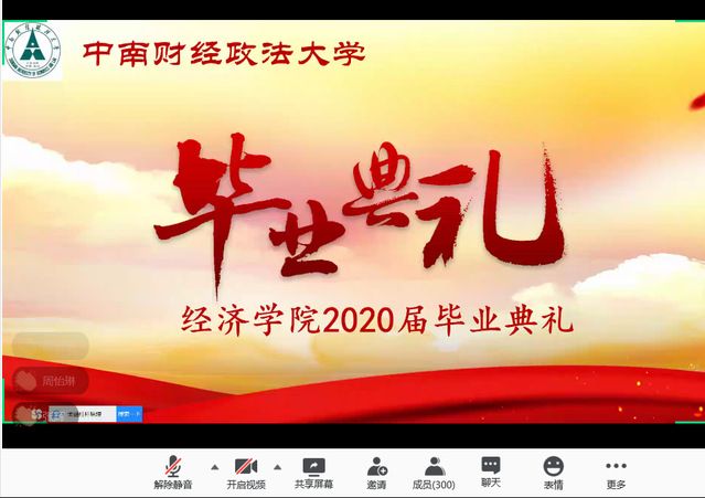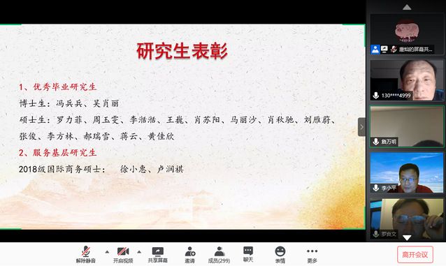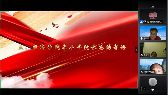 (学生记者 赵依雪)6月28日晚上7点,经济学院2020届线上毕业典礼在腾讯会议室顺利举行。本次毕业典礼由经济学院党委副书记詹万明老师主持,到场嘉宾有经济学院党委陈勤舫书记、院长李小平教授、副院长罗良文教授和全体辅导员老师,2020届本科毕业生、研究生毕业生到场参加。